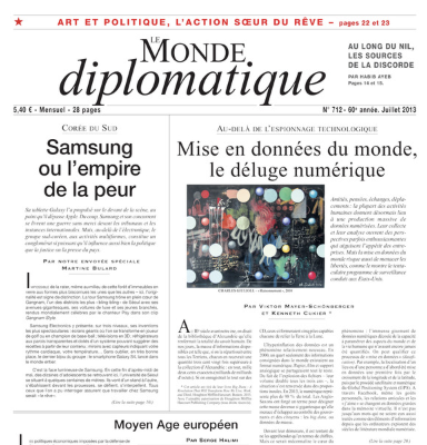 Extrait : Kenneth Cukier & Viktor Mayer-Schönberger (2013), “Mise en données du monde, le déluge numérique”, Le Monde Diplomatique.
