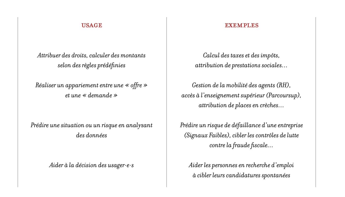 Extrait de Défenseur des droits, Algorithmes, systèmes d’IA et services publics : quels droits pour les usagers ? Points de vigilance et recommandations, 2024.